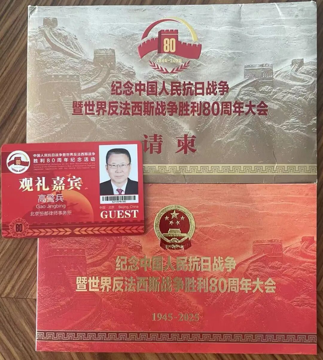 ?2025年9月3日,紀念中國人民抗日戰(zhàn)爭暨世界反法西斯戰(zhàn)爭勝利80周年大會在北京天安門廣場隆重舉行,當晚《正義必勝》文藝晚會在人民大會堂隆重舉辦。恒都律師事務所管委會主任高警兵律師受邀現(xiàn)場觀禮九三閱兵及《正義必勝》文藝晚會。大會現(xiàn)場,各界代表共同聆聽了習近平總書記的重要講話,深刻感悟中華民族偉大的抗戰(zhàn)精神;與此同時,恒都各分所也組織集中觀看了現(xiàn)場直播。此次觀禮既是對歷史的莊嚴銘記