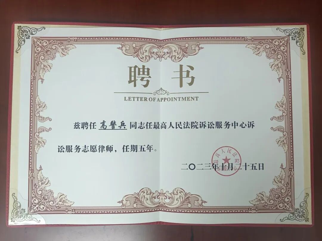 表彰榮譽(yù):最高人民法院訴訟服務(wù)專家志愿者